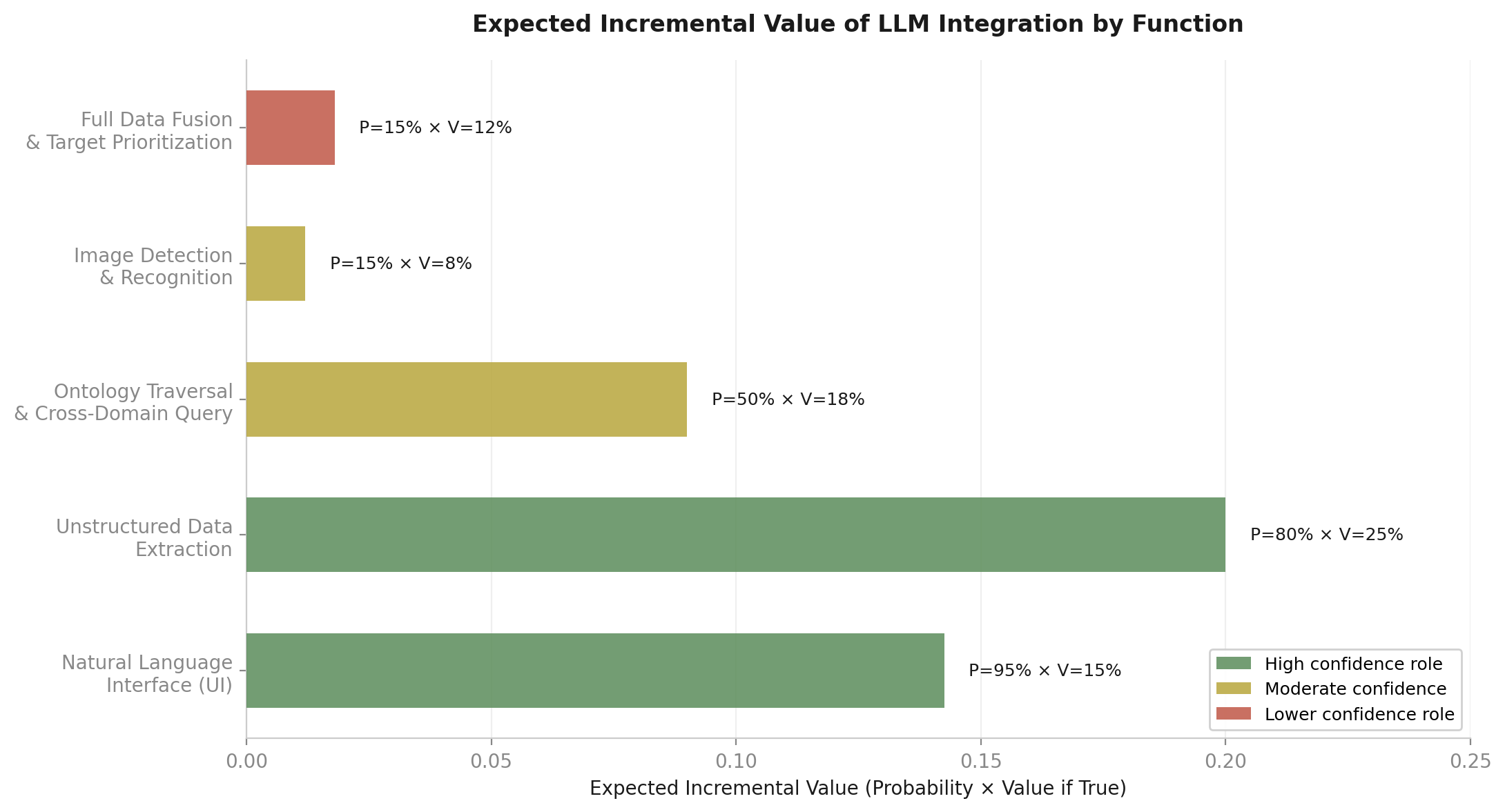 Expected incremental value by function, assuming mature pre-LLM pipeline.
