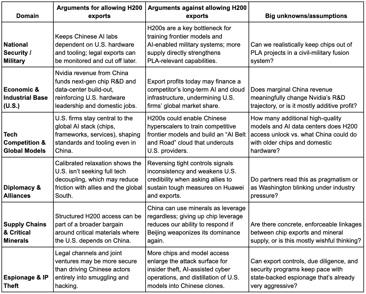 The strongest arguments against exporting H200s