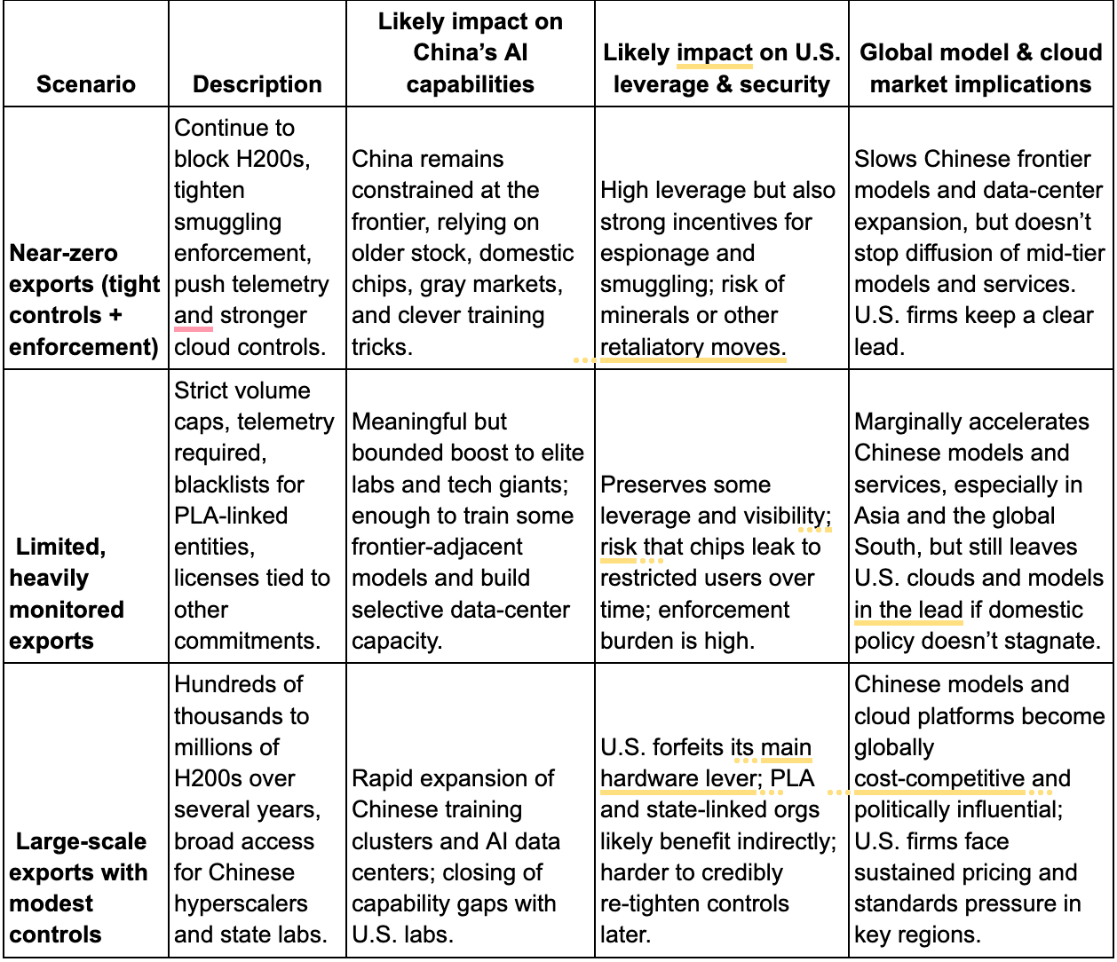 We’re not choosing between a world in which China has zero access to advanced chips and a world in which they have all they want. We’re choosing between a leaky denial regime and an explicit, regulated flow that clearly increases the total number of H200‑class devices in Chinese hands.